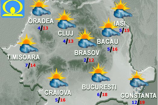 Maximele vor fi cuprinse între 9 şi 19 grade, iar minimele, în general, între 1 şi 9 grade.
