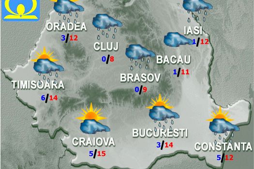 Sâmbătă, în ţară, vremea va fi normală din punct de vedere termic. Temperaturile maxime vor fi cuprinse, în general, între 8 şi 16 grade, iar cele minime între 0 şi 8 grade.
