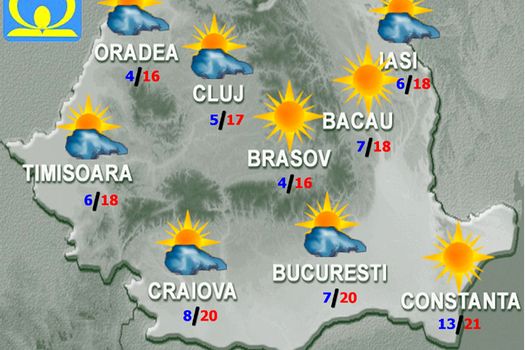 JOI, vremea se va menţine răcoroasă dimineaţa şi noaptea în majoritatea zonelor. Cerul va fi variabil, cu unele înnorări în zona de munte, unde doar izolat va ploua slab. Vântul va sufla slab şi moderat, cu intensificări pe crestele montane. Temperaturile maxime vor fi cuprinse între 13 şi 23 de grade, iar cele minime, în general, între 2 şi 12 grade.