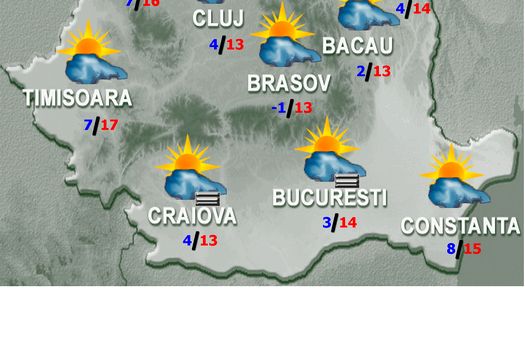 Temperaturile maxime vor fi cuprinse între 9 şi 18 grade, iar cele minime între 0 şi 10 grade, mai coborâte în depresiunile din estul Transilvaniei spre -4 grade. În zonele joase, îndeosebi în regiunile extracarpatice, dimineaţa şi noaptea local va fi ceaţă, care izolat poate fi persistentă.