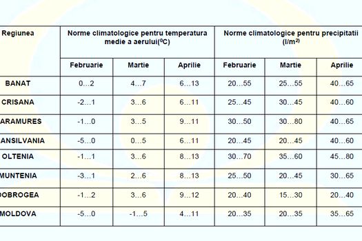 Temperaturile medii lunare se vor încadra în limite apropiate de normele climatologice în majoritatea regiunilor, exceptând sud-estul, sudul şi vestul ţării, unde local valorile termice pot fi peste mediile multianuale.