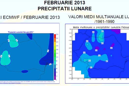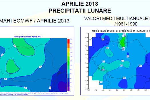 Cantităţile lunare de precipitaţii se pot situa peste normele climatologice în vestul, centrul şi nord-estul ţării, iar în restul teritoriului vor fi posibile cantităţi apropiate de mediile multianuale.