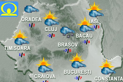 Temperatura maximă se va situa în jurul valorii de 7 grade, iar cea minimă va fi de -4…-2 grade.
