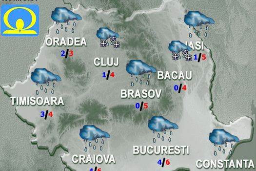 Temperatura maximă se va situa în jurul valorii de 6 grade, iar cea minimă va fi de 3 … 4 grade.