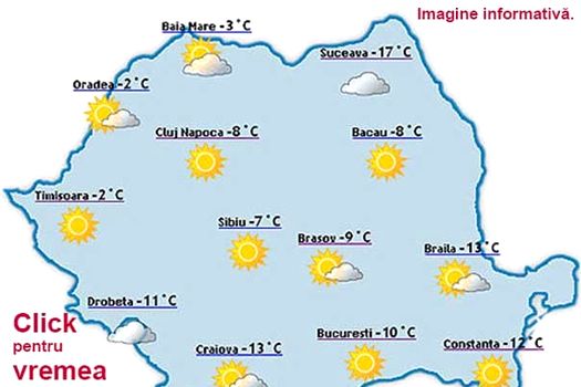 Temperaturile maxime vor fi de la -6…-5 grade în nordul Moldovei până la 8…9 grade în Dealurile de Vest, iar cele minime se vor situa între -4 şi 6 grade, mai coborâte în depresiuni, până la -10 grade.