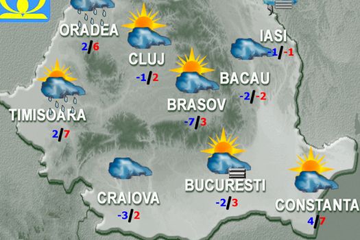 Temperatura maximă se va situa în jurul valorii de 3 grade, iar cea minimă va fi de -3…-1 grad.