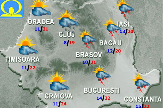 Vremea va fi răcoroasă şi în general instabilă. În cursul zilei de miercuri, în nordul, centrul şi estul teritoriului, precum şi la munte, înnorările vor fi accentuate şi se vor semnala averse şi descărcări electrice. Cantităţile de apă vor depăşi local 15 l/mp şi izolat 30...40 l/mp.