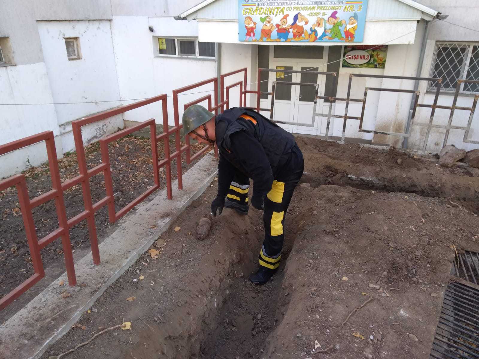 Proiectil din cel de-al Doilea Război Mondial, găsit lângă o GRĂDINIŢĂ din Vaslui – FOTO
