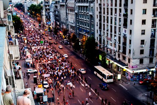 Sute de manifestanţi s-au strâns duminică seară la fântâna de la Universitate de unde au pornit în marş spre Guvern, cerând stoparea proiectului minier de la Roşia Montană. După o manifestaţie de peste o oră în Piaţa Victoriei, unde numărul protestatarilor a ajuns la aproximativ 2.000, aceştia s-au întors la Universitate, unde s-au aşezat pe bulevard, ocupându-l pe un sens, de la fântână până după intersecţia cu strada Ion Câmpineannu.
