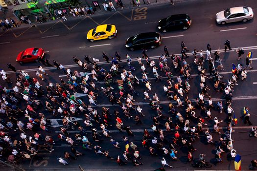 Sute de manifestanţi protestează în continuare la Universitate faţă de proiectul de la Roşia Montană, o parte dintre ei aşezându-se pe carosabil şi blocând traficul auto pe sensul de mers dinspre Piaţa Romană, în timp ce pe celălalt sens se circulă.
