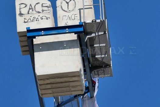 După ce un negociator al Poliţiei Capitalei a avut o discuţie cu el, apoi poliţiştii Secţiei 1 au identificat un prieten al protestatarului cu care a şi dialogat, tânărul a decis să-i pună pantalonii şi să coboare. Pe piept el şi-a pictat semnul păcii.
