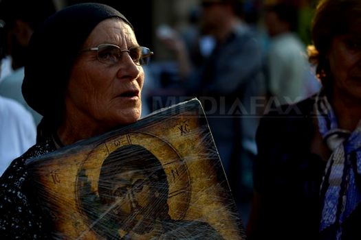 Alături de ei, manifestanţii au strigat „Neamul românesc nu e paşalâc turcesc”, „România, ţară ortodoxă” şi i-au huiduit pe Victor Ponta şi pe „pastorul adventist Gâdea”, pentru că „prezintă sondaje mincinoase”.