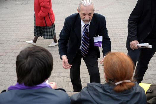 Participanţii, în majoritate tineri, au fost îmbrăcaţi în violet sau au purtat diferite accesorii de această culoare.