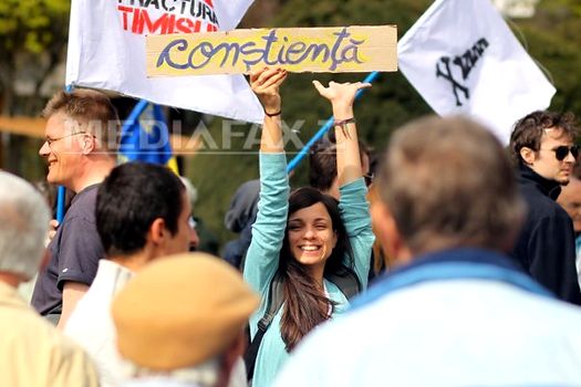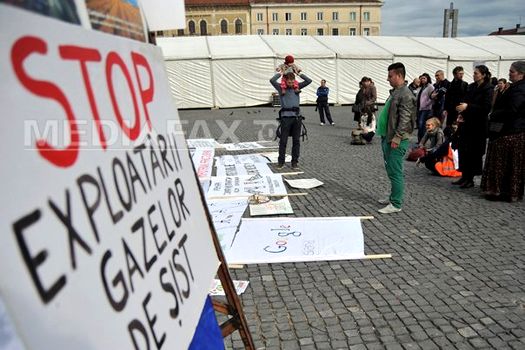 Astfel, peste 100 de persoane au protestat, în Piaţa Unirii din Cluj-Napoca, faţă de exploatarea gazelor de şist prin metoda fracturării hidraulice.