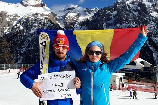 „Suntem în Italia 70 de români care am venit la schi în staţiunea de munte Madonna di Campliglio într-o vacanţă organizată de un grup din Cluj-Napoca şi am vrut să susţinem iniţiativa #şîeu vreau autostrăzi, aşa că ne-am oprit 15 minute din a schia sau a ne da cu placa. Fiecare dintre noi a transmis mesajul că vrem construirea de autostrăzi”, a spus Pop.