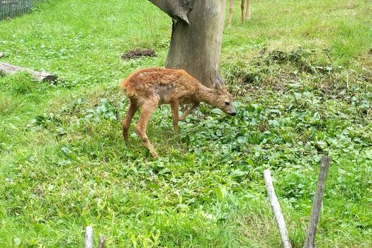 Puiul de căprioară va împărţi un ţarc de 400 de metri pătraţi cu încă o căprioară şi cu doi iepuri de Patagonia.