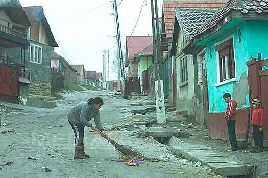 Dacă la intrarea în comună abia zăreşti vreun localnic pe stradă, mai spre centru e zarvă mare. Câţiva copii se bucură de iarnă. Se dau pe derdeluş cu lădiţe de bere pe post de săniuţe, cu pungi sau fără. Zăpadă nu prea este. Dar străzile îmbibate de noroi amestecat cu gunoaie şi peturi s-au transformat într-un adevărat gheţuş. Sunt curioşi să ştie cine sunt vizitatorii. Stau la poze şi se întrec să îşi arate măiestria în de-ale derdeluşului. O femeie iese la poartă cu o mătură, mai mult să vadă ce vor „străinii”, decât să măture inutil gunoaiele captive sub gheaţă.