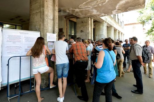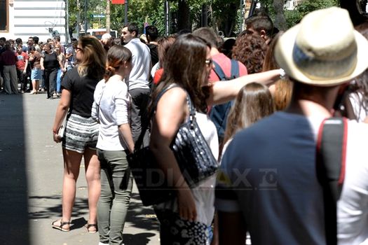 „Am venit cu prietena mea”, povesteşte un tânăr ascuns la umbră de căldura dogoritoare. „Stă la coadă de peste trei ore. Dar, mi-a trimis la SMS, zice că aproape a ajuns. Se înscrie la Cibernetică. Este cea mai mare concurenţă. Dar ieri s-a stat chiar şi cinci ore”, mai spune tânărul.