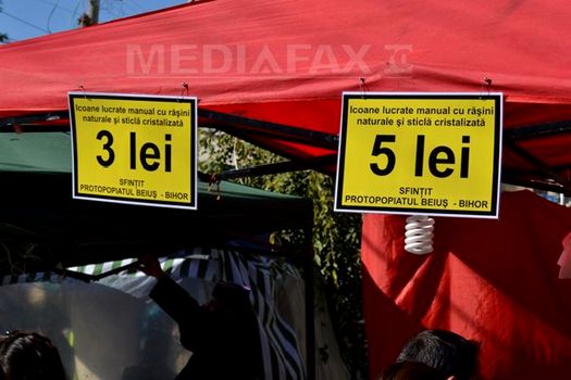 Preţurile icoanelor pornesc de la câţiva lei şi ajung şi la 250 de lei cele pictate de mână, pe lemn de brad. Se vând şi vase pentru agheasmă – din plastic, care costă 5 lei, sau din sticlă, care au pictate pe ele icoane şi ajung să coste şi 10 lei, în funcţie de dimensiune şi de complexitatea modelului de pe ele.