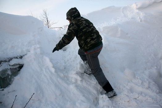 Oamenii se plâng că acoperişurile caselor ar putea ceda sub greutatea zăpezii. Mulţi spun că pereţii caselor scârţâie deja sub greutatea nămeţilor.