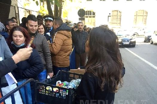 Voluntarii, toţi tineri până în 30 de ani, fac sute de drumuri din centru către oameni şi înapoi, cărând lădiţe cu mâncare, apă, suc, biscuiţi şi banane. Ei ştiu că oamenii trebuie să mănânce înainte să doneze sânge.