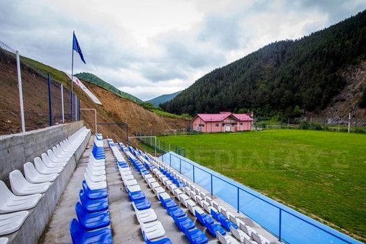 Stadionul se vede că este utilizat. Terenul este amenajat la poalele unui deal, iar pe colină au fost construite tribunele. O clădire roz adăposteşte vestiarele şi dă un pic de culoare zonei. Printre „pişcoturile” cu care s-a pavat de jur-împrejurul clădirii, buruielile au scos deja capul şi tind să devină stăpâne.