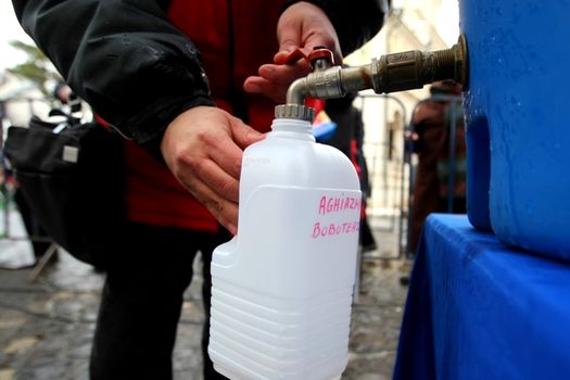 Au existat, însă, şi comisionari. Altfel spus, credincioşi veniţi să ia agheasmă pentru mai multe persoane. „Ştiu eu ce fac. Am mulţi bătrâni care nu pot să vină să ia. Iau pentru toţi”, a motivat un bărbat.