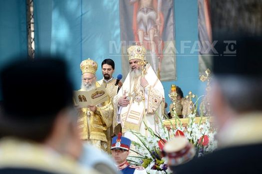 Preafericitul a oficiat Sf. Liturghie, alături de ierarhii delegaţi ai Patriarhiei Ecumenice a Constantinopolului, Patriarhiei Alexandriei, Patriarhiei Antiohiei, Patriarhiei Ierusalimului şi Bisericii Ortodoxe a Georgiei, biserici pe care le-a ajutat mult domnitorul Constantin Brâncoveanu. Astfel, slujba, care a avut loc pe un podium special amenajat în curtea bisericii şi a putut fi urmărită de mulţime pe nişte monitoare mari, a fost ţinută, în anumite momente, în limbile prelaţilor invitaţi.
