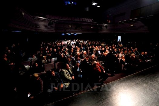 Într-o sală aproape plină, în care au fost circa 300 de persoane, intonarea imnului şi minutul de reculegere pentru comemorarea eroilor Revoluţiei au fost printre puţinele momente la care sala a asistat în linişte.