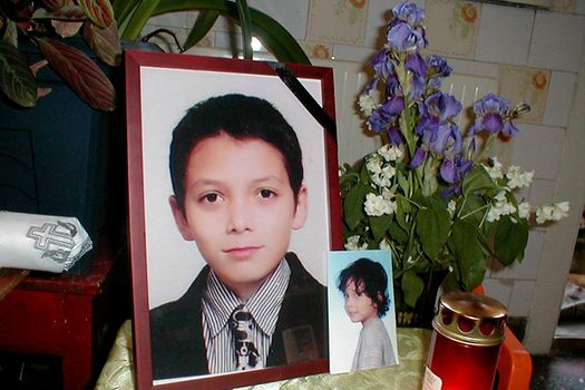 Un puşti creţ priveşte cu ochi mari dintr-o poză înrămată aflată pe o noptieră, înconjurată de lumânări care ard tot timpul şi o vază de flori schimbate zilnic, un mic altar improvizat la capătul patului. Tatăl băiatului, Lukacs Iosif, îmbrăcat în negru, aranjează un urs de pluş, îmbrăcat într-un tricou de sportiv, dintr-un pat supraetajat, aflat în aceeaşi cameră, şi îi dau lacrimile.