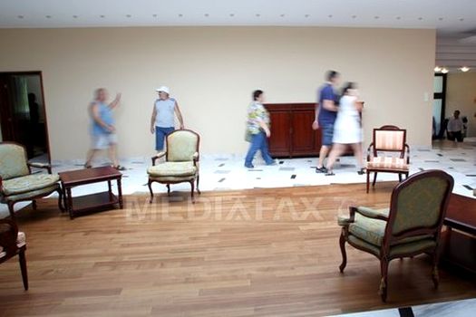 Pare improbabil ca grupurile de pensionari, care formează cam trei sferturi dintre vizitatori, presărate de oameni de vârstă mijlocie, cu copii, şi nişte tineri răzleţi, să creeze probleme de ordine. Ajunşi la intrare, se formează grupuri de circa 30 de oameni, şi vizitatorii sunt ghidaţi prin casă de angajaţii RA-APPS. La intrare şi la ieşire au fost amplasate aparate cu rezerve de apă şi pahare.