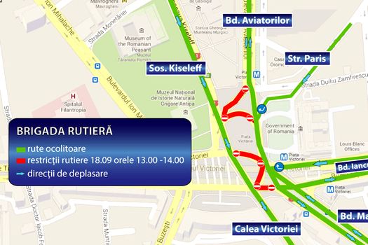 În timpul marşului, circulaţia rutieră va fi restricţionată pe traseul de deplasare a manifestanţilor şi pe străzile adiacente. De asemenea, în timpul mitingului din Piaţa Constituţiei va fi restricţionat traficul pe bulevardele Unirii şi Libertăţii.
