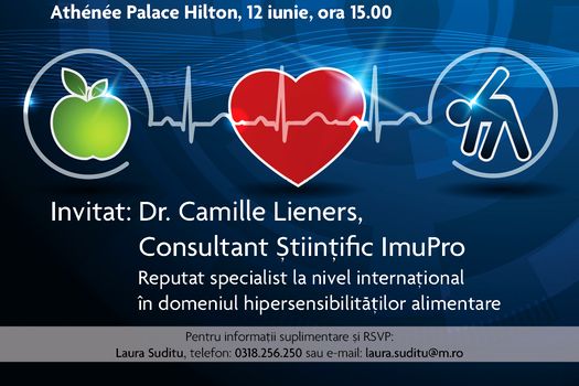 Invitatul special al seminarului este Dr. Camille Lieners, consultant Ştiinţific ImuPro,  reputat specialist la nivel internaţional în domeniul hipersensibilităţilor alimentare.