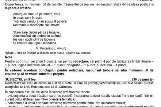 Subiectul al doilea a fost comun pentru ambele profile: perspectiva narativă dintr-un text de Mihail Sadoveanu, un fragment din „Venea o Moară pe Siret”.