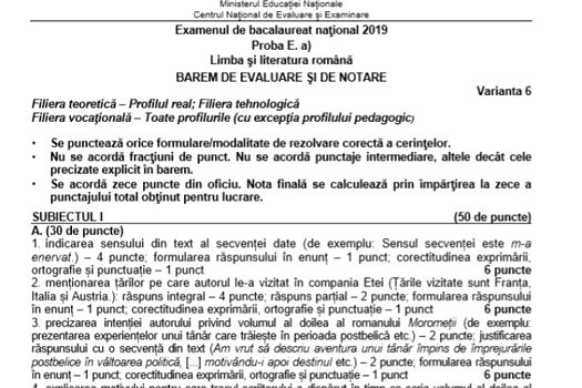 Vezi aici SUBIECTELE PRIMEI SESIUNI A BACALAUREATULUI 2019