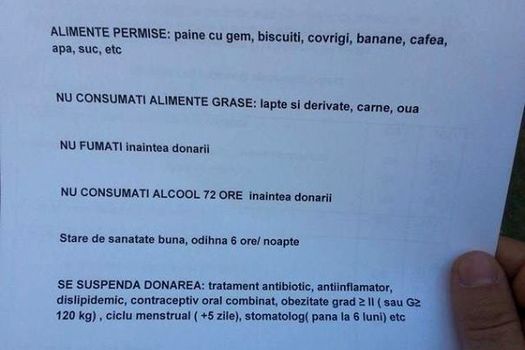 Vedeţi AICI fişa care trebuie completată pentru donarea de sânge