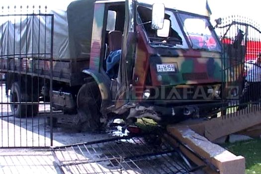 Şapte militari de la o unitate din Brăila au ajuns, miercuri, la Spitalul Judeţean de Urgenţă din Târgovişte, după ce, în urma exploziei unui pneu, autocamionul în care se aflau a ieşit de pe carosabil, pe DN 72 Ploieşti - Târgovişte, intrând în gardul casei tenismenei Sorana Cârstea.