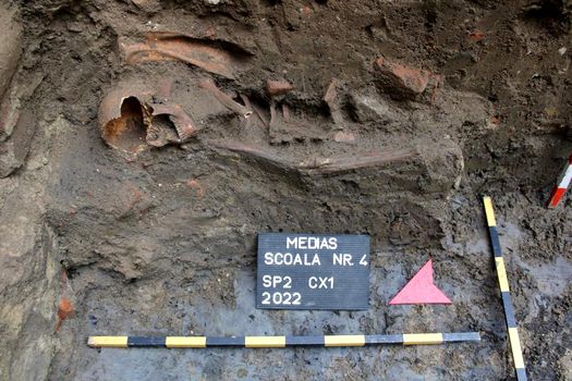 Potrivit Primăriei Mediaş, a fost descoperit şi un schelet uman.