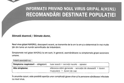 "Am hotărât ca toţi miniştri să asigurăm distribuirea în 30 de zile, gratuit, către toate familiile din statele membre UE a scrisorii privind măsurile de prevenire şi tratare a noului tip de gripă", a declarat Bazac.