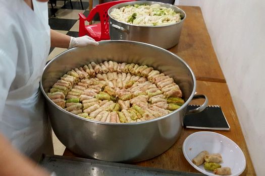 La cantina de ajutor social din Iaşi este forfotă de câteva zile, pentru că aici se pregătesc 20.000 de sarmale ce vor fi împărţite sâmbătă pelerinilor, după slujba de hram a Cuvioasei Parascheva. Treizeci de gospodine au început de câteva zile să pregătească materia prima pentru sarmale.