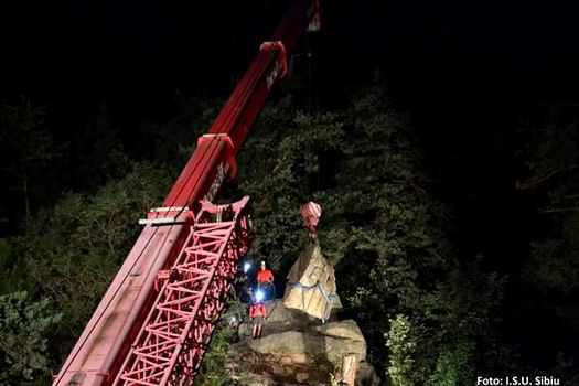 Potrivit purtătorului de cuvânt al ISU Sibiu, pentru îndepărtarea celor două stânci au fost angrenate 12 instituţii din Sibiu şi peste 50 de persoane, intervenţia fiind sprijinită cu o macara de mare tonaj.