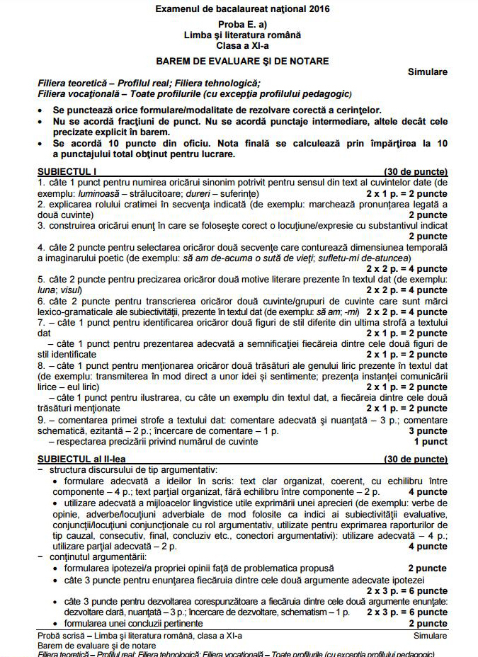 Prima pagină » Social » SIMULARE BACALAUREAT 2016. Subiecte şi barem de evaluare şi notare pentru clasele a XI-a şi a XII-a