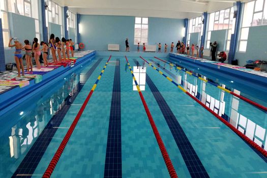 Bazinul este dotat separatoare de culoar şi centuri de înot, are trei dezumidificatoare, un robot automat pentru curăţarea pereţilor bazinului şi sisteme automate pentru tratarea apei.