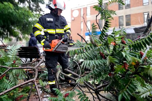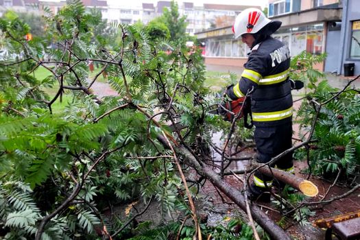 De dimineaţă, pompierii au acţionat pentru evacuarea apei din 10 curţi, locuinţe şi spaţii interioare situate pe străzile Rozelor, Pietrelor, Cărămidarii Vechi, Cărămidarii Noi, Călugăreni, Gloriei, şoseaua Bălănoaiei, Fundătura Bujorului şi Fundătura Dudului. Au fost de asemenea evacuate apele din subsolul Teatrului „Tudor Vianu”, dintr-un centru comercial situat pe Bulevardul Mihai Viteazu şi din vestiarele Bazei Sportive de pe şoseaua Portului. Echipele au intervenit şi pentru îndepărtarea crengilor unui copac căzut pe cablurile de telefonie de pe strada Tineretului.