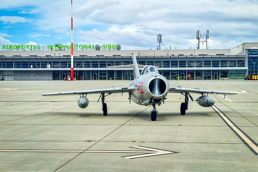 Pasagerii şi personalul de pe Aeroportul Internaţional Sibiu au avut parte de o surpriză spectaculoasă: apariţia unui MiG-15, unul dintre primele avioane cu reacţie produse de Uniunea Sovietică după cel de-Al Doilea Război Mondial.