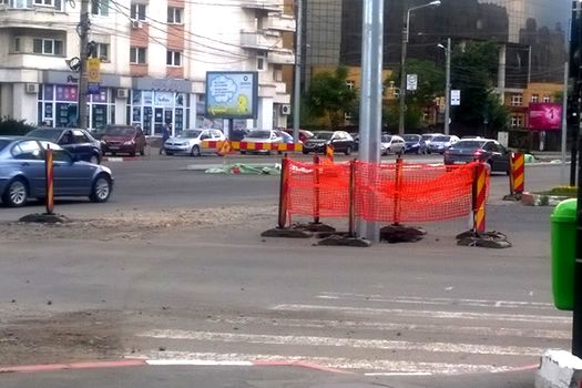 Doi stâlpi de susţinere a reţelei de distribuţie a energiei electrice au fost amplasaţi, zilele trecute, în mijlocul carosabilului, la intersecţia străzii Gheorghe Doja cu strada Văleni, una dintre cele mai mari şi mai circulate intersecţii din centrul municipiului Ploieşti.