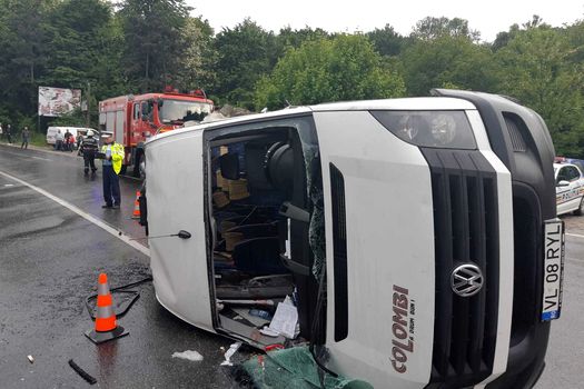Potrivit ISU Vâlcea, în microbuzul răsturnat erau cel puţin 12 călători.