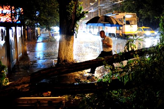 În sectorul 1, un stâlp a căzut pe un autobuz pe Bulevardul Expoziţiei, călătorii neputând ieşii pentru că s-au blocat uşile, iar în zona Casei Presei Libere un copac a căzut pe o maşină în care este o femeie, două ambulanţe fiind trimise în aceste zone, a declarat directorul Ambulanţei, Alis Grasu.