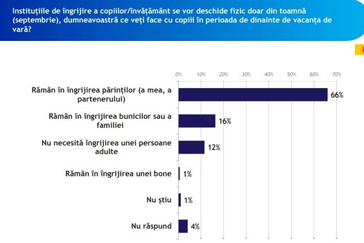 „Două treimi dintre părinţii copiilor cu vârste între 0 şi 19 ani urmează să aibă copiii în îngrijire în perioada de dinainte de vacanţa de vară”, se arată în studiul IRES.