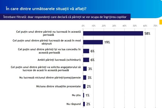 Aproape şase din zece părinţi care afirmă acest lucru se află în situaţia în care cel puţin unul dintre ei nu lucrează în această perioadă.